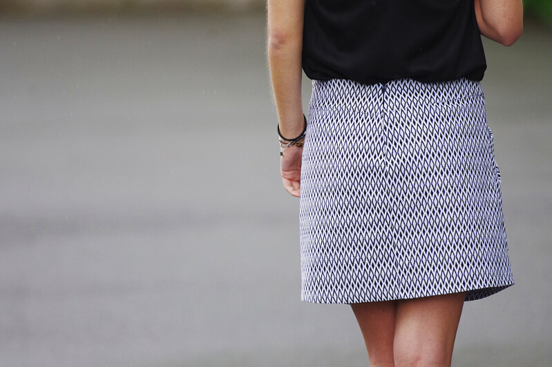 Le bon positionnement de la jupe en taille basse l’est aussi, j’insiste, car si vous la portez plus haute, elle risque de se retrouver trop large à la taille ET… elle deviendra bien trop courte.