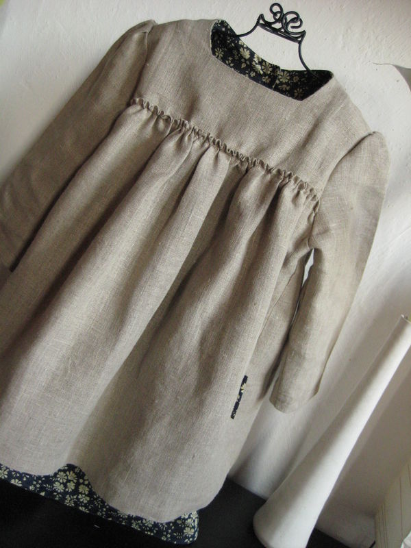 Sur-tunique Sofia “C’est Dimanche”, adaptation “Kid”, en lin naturel (Fabric Addicts) et Liberty Capl marine (Shaukat)