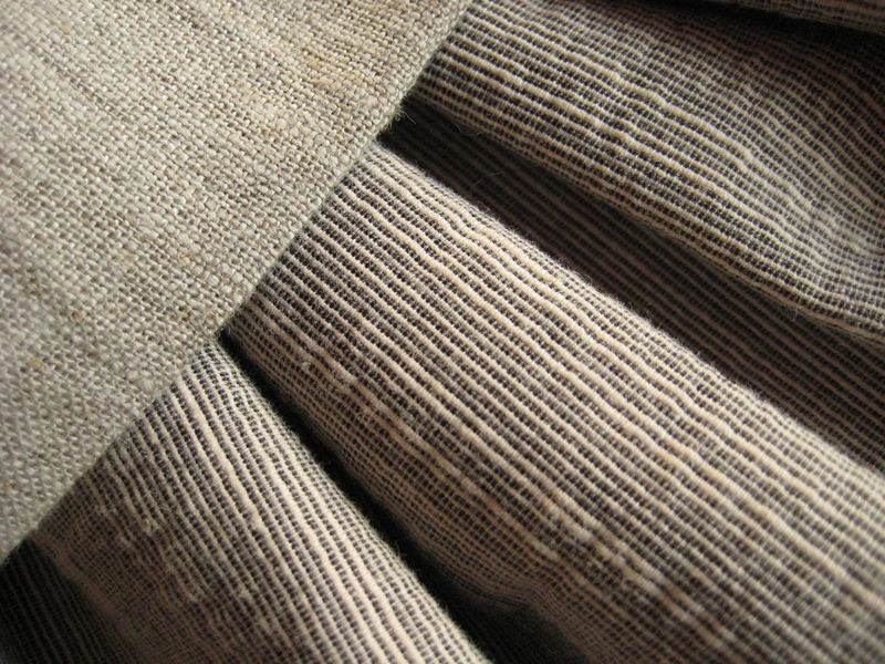 Jupe longue en coton-élasthanne colori naturel tramé (Toto), et lin naturel (Fabric Addicts), bouton de récup’