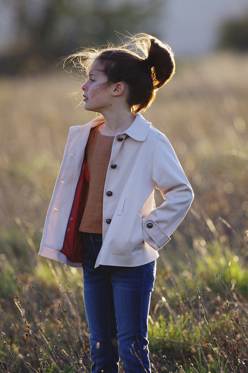 Avril. Ne te découvre pas d’un fil. Peut être, enfin sûrement. Mais rien ne nous empêche de préparer des tenues plus légères et adaptées pour les enfants (ou alors soyons prévoyantes, et envisageons la rentrée de septembre prochain !). Le patron MAGNESIUM [Enfant] possédant beaucoup d’options notamment avec le Pack Complet, il est ainsi possible de jouer sur les styles, d’assembler, de composer et de s’amuser ! Veste, blouson, manteau, duffle coat, caban… Et aujourd’hui, grâce à un mix d’options, c’est la couture d’un trench qui est à l’honneur.