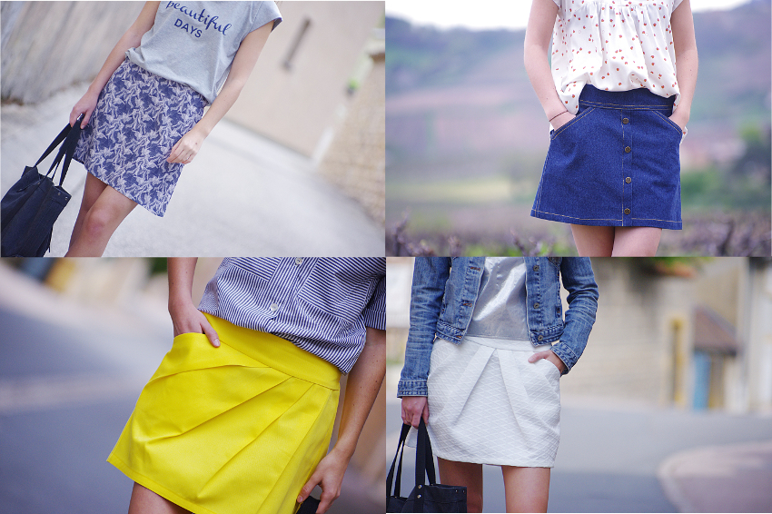 • Version A : devant  épuré. C’est la minimaliste, la petite jupe des humeurs simples, celle qui peut aussi accepter tous les beaux tissus imprimés, du plus discret ou plus fou.