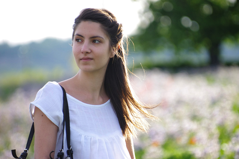 Cette petite blouse est intégralement cousue dans un lange de coton blanc édité et acheté chez France Duval Stalla. Cette matière est particulièrement adaptée pour ce style de petite blouse froncée. Aérienne et toute en légèreté, c’est TRÈS agréable à porter, vraiment ! Les fronces raisonnables présentent une jolie finition sur ce type de tissu très souple, ce qui limite l’effet parachute souvent craint lorsque l’on rajoute de l’ampleur à ce niveau.